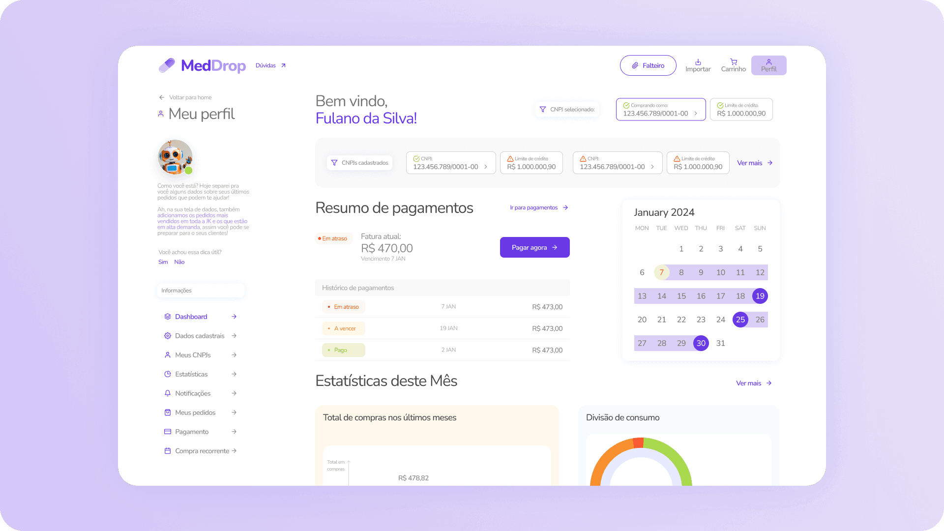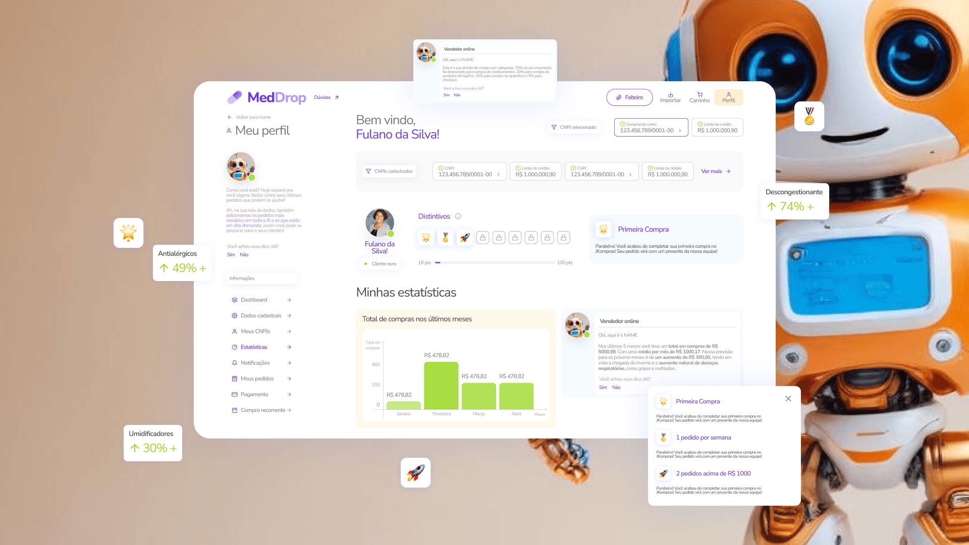 Meddrop is a pharmaceutical distributor based in the interior of São Paulo, holding a market share of over 80% among small and medium-sized pharmacies. However, only 17% of these currently use online purchasing.